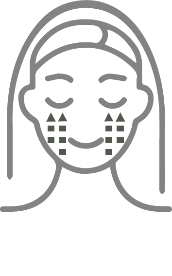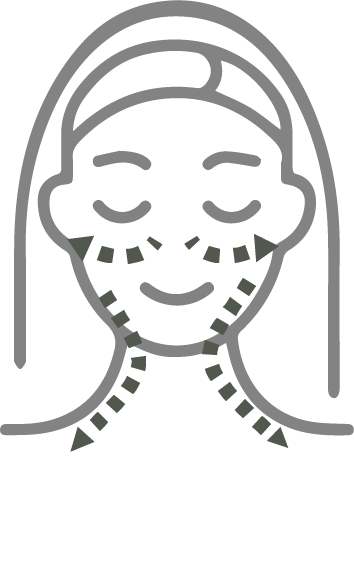 (2) Use the side of your index fingers to spread the oil or balm from the middle of your face towards the hairline in a slight upward motion and then continue to move down the sides of your neck